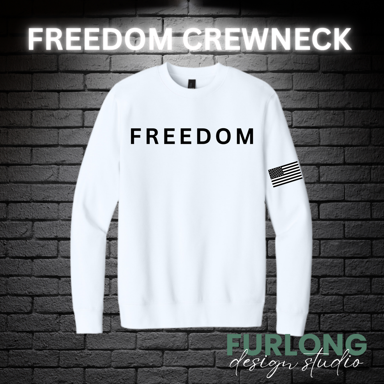 Bold, simple, and unapologetic—this crewneck makes a statement without saying too much. Featuring clean black lettering across the chest and a modern black-and-white American flag on the sleeve, it’s a powerful way to show your pride and values every day.