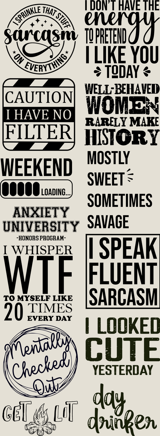 Snarky Sayings - DTF Gang Sheet (22x60)