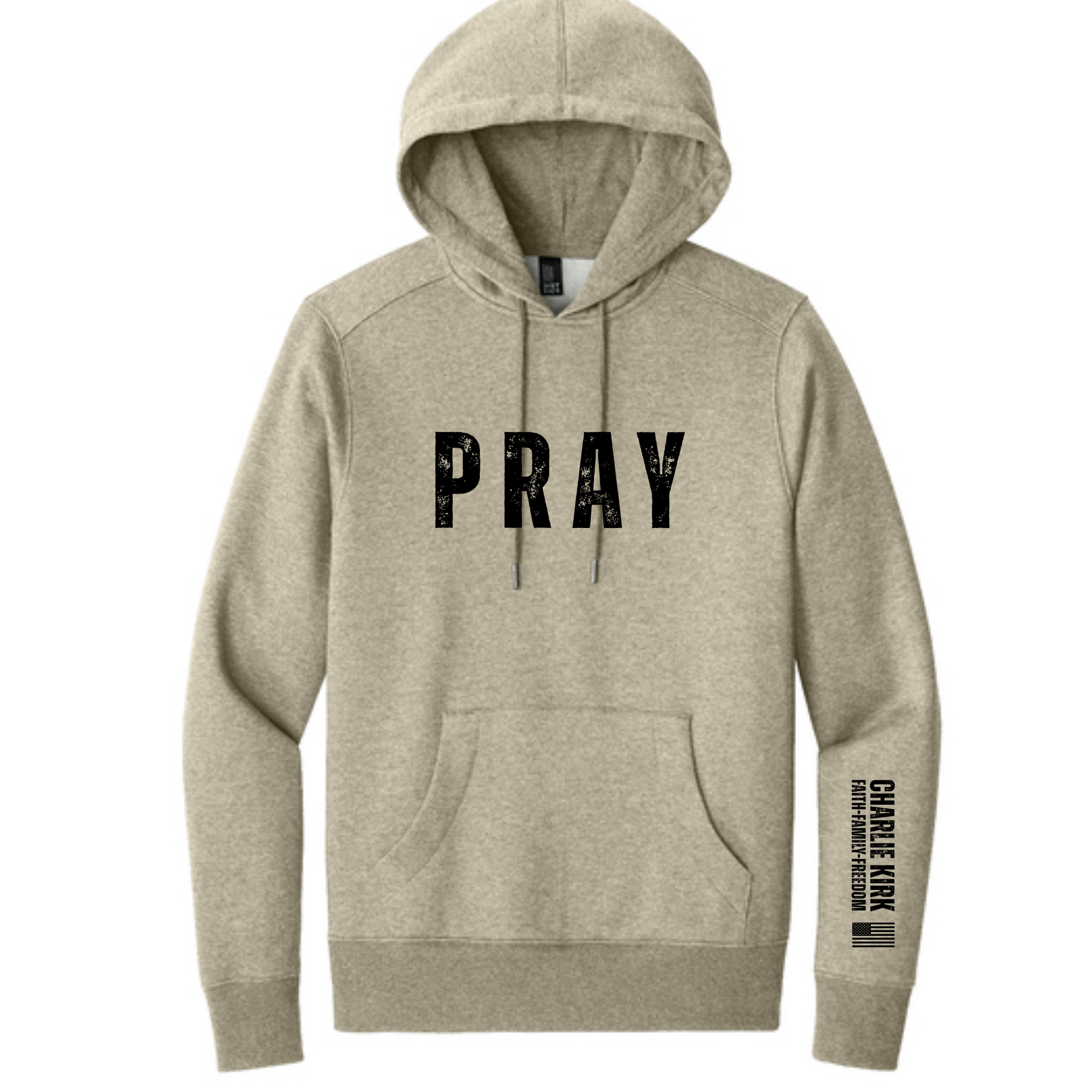 Faith at the forefront — the PRAY Hoodie is a bold reminder to ground your life in prayer. With distressed black lettering across the chest spelling PRAY, this design is both simple and powerful, urging us to lean on faith in every season.