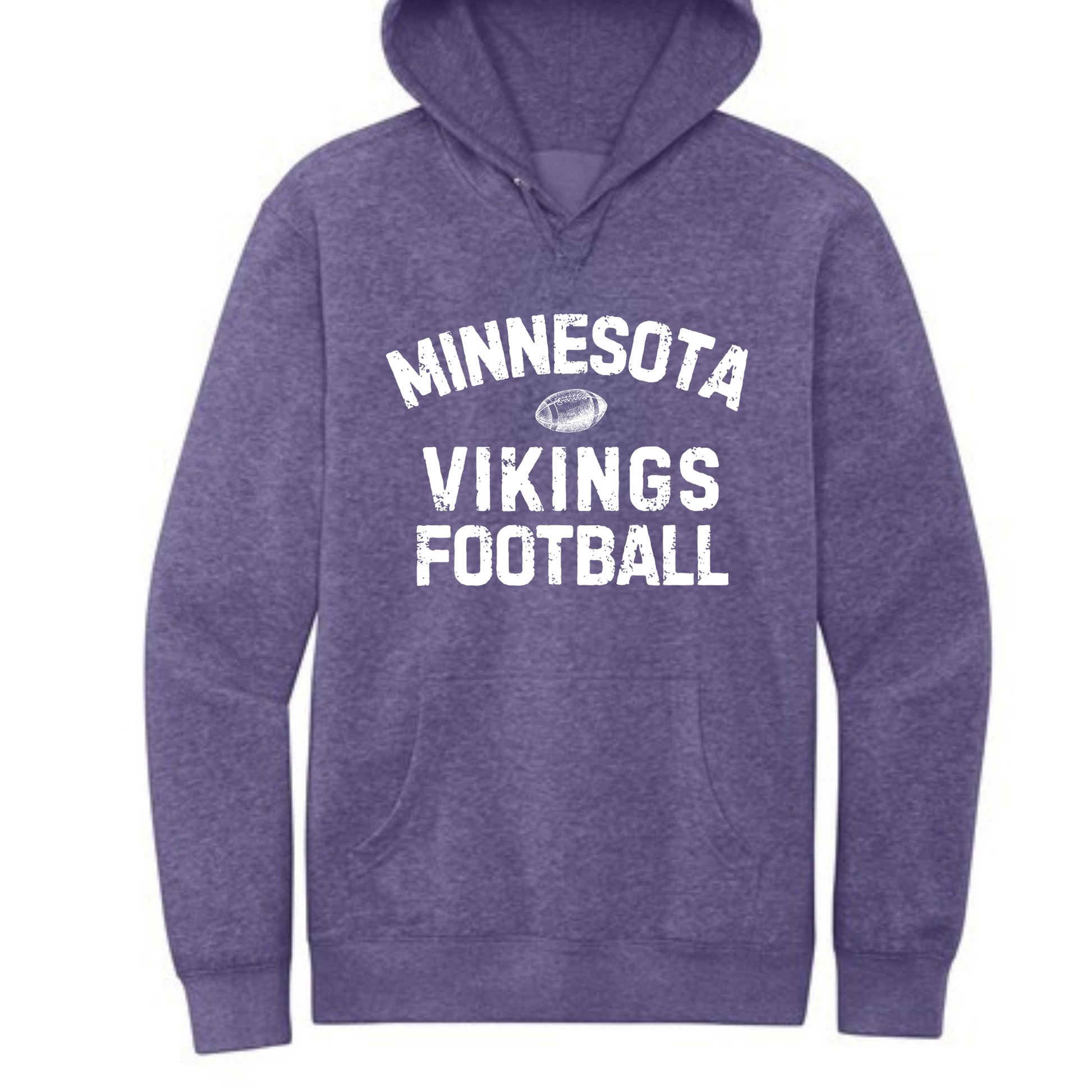 Keep your game-day look simple and bold with this purple hoodie featuring distressed white Minnesota Vikings Football lettering and a football graphic across the chest. Cozy, casual, and built for fans who bleed purple and gold, this hoodie is a must-have for football season.