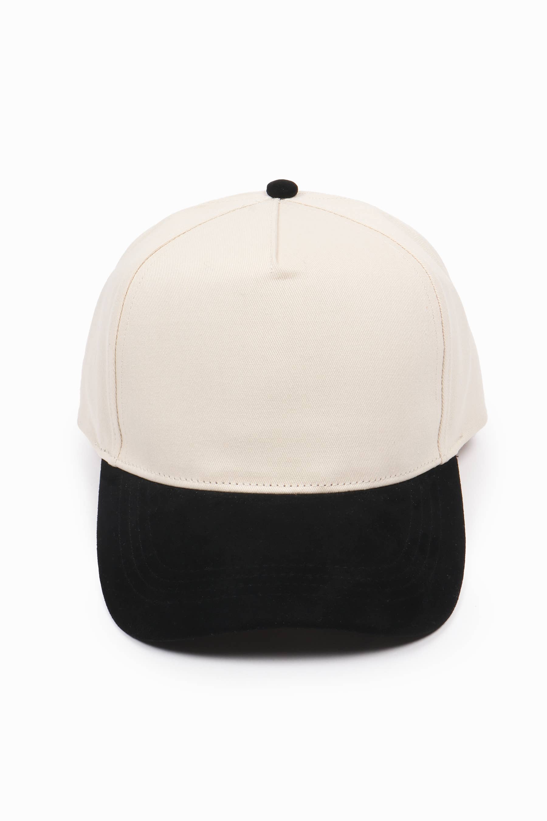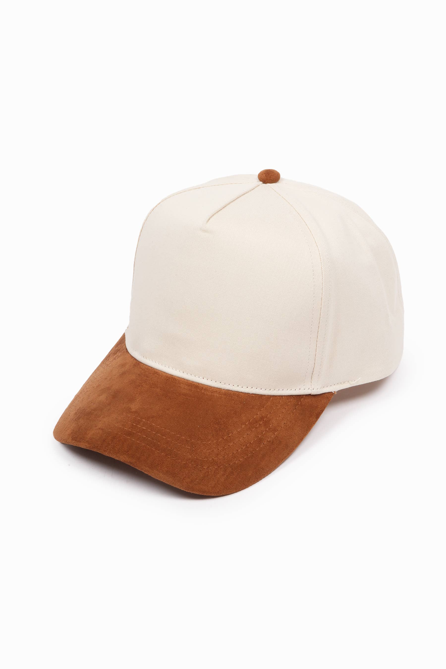 This 5-panel baseball cap features a smooth suede brim for a touch of refined style. Casual, cool, and effortlessly elevated.