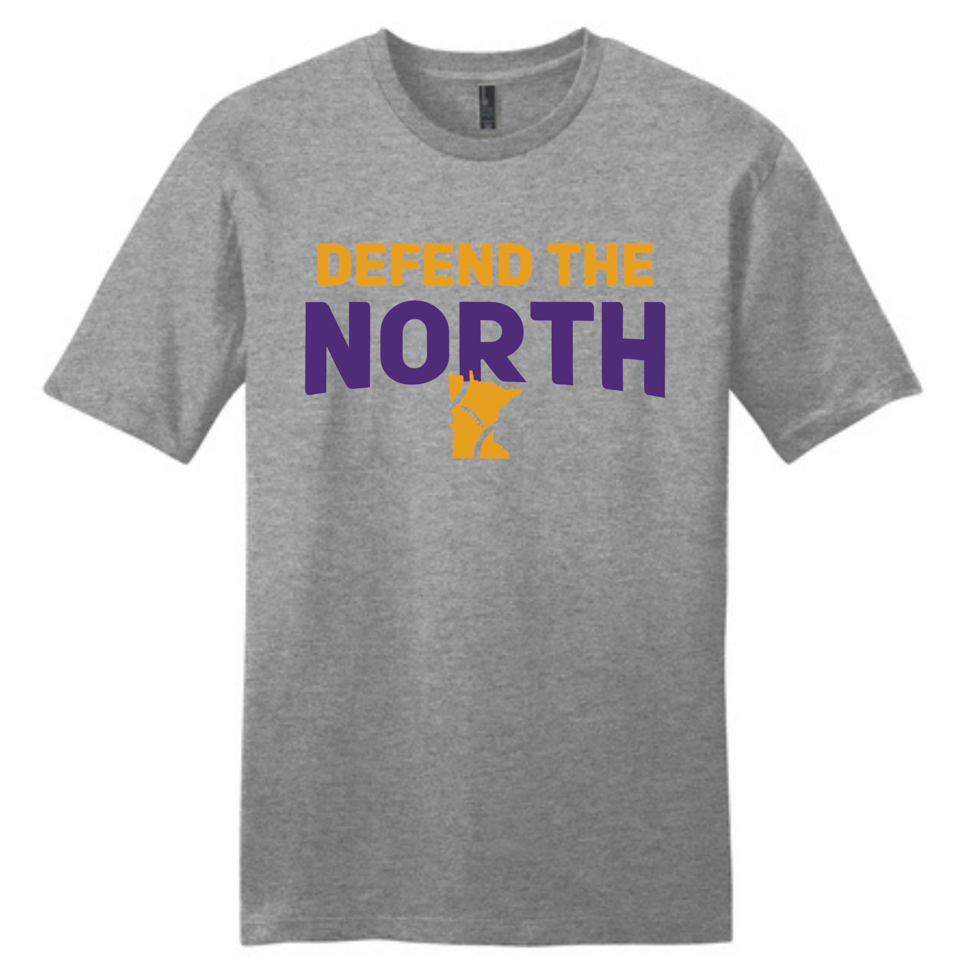 Stand tall and rep your squad, featuring gold and purple Defend the North lettering and a Minnesota state graphic. Built for fans who bleed purple and gold, this shirt is all about showing your loyalty on and off the field.